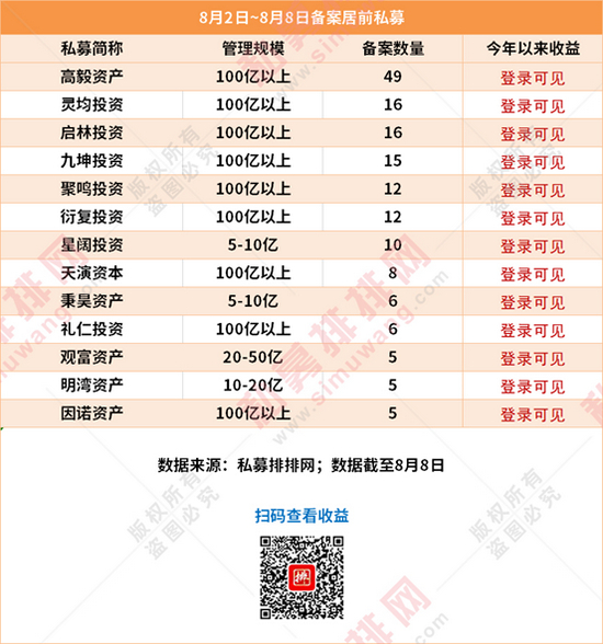 除了上文提及的私募外,还有聚鸣投资、星阔投资、秉昊资产、礼仁投资、观富资产、明湾资产等多家私募,在8月首周的产品备案榜中位居前列。