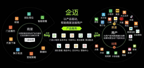 疫情迫使餐饮行业洗牌,商家也开始将原始的线下门店会员制转换成线上模式,通过小程序、公众号、微信群等方式对客户进行精细化运营管理,将更多的用户转换为会员。企迈科技提供的会员中心产品可以打通微信、天猫、美团、支付宝、线下门店等多渠道客户数据,构建品牌私域流量池,线上线下同步营销活动和会员信息,实现线上商城和线下门店联动获客、流量互通。