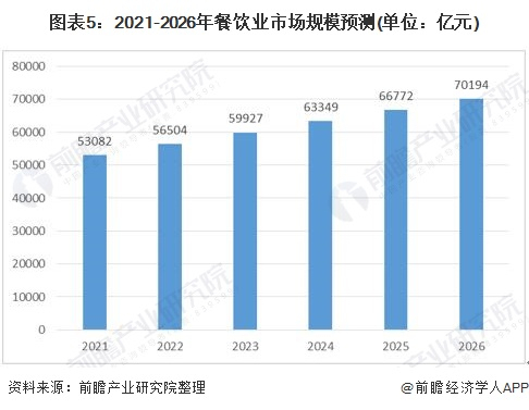 艾瑞咨询发布的《2019年中国企业级SaaS行业研究报告》中提到,2018年中国行业垂直型SaaS市场规模达到103.3亿元,其中餐饮SaaS市场规模为10.3亿元,仅占10%,结合2018年的餐饮市场规模4.27万亿元,餐饮SaaS规模仅占总餐饮市场规模的0.02%。数据显示,我国餐饮市场规模2021年将达到5.3万亿元,预测2026年超过7万亿,2021-2026复合增长率约为4.77%,为餐饮SaaS市场留下了极大的增量空间。