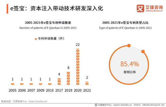 2014年e签宝开始寻求商业模式的转型。趁着互联网和企业数字化的“东风”,e签宝推出了SaaS平台,多方用户可以在云端一次性解决合同制定、实名认证及签署等环节。在资本的加持下,e签宝加快申请技术专利的脚步,2017-2020年3年期间累计申请专利34个。