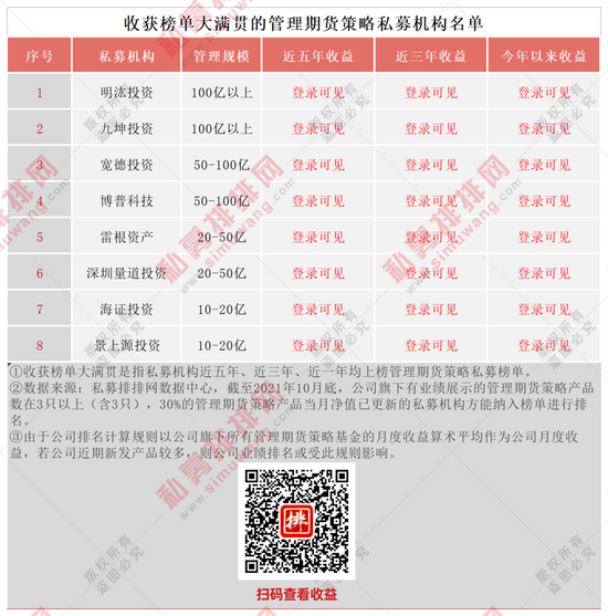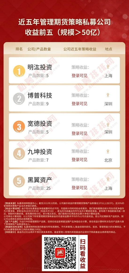 管理期货策略私募机构近五年全部正收益,百亿私募明汯投资夺冠