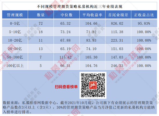 以下为不同规模管理期货策略私募机构近三年榜单: