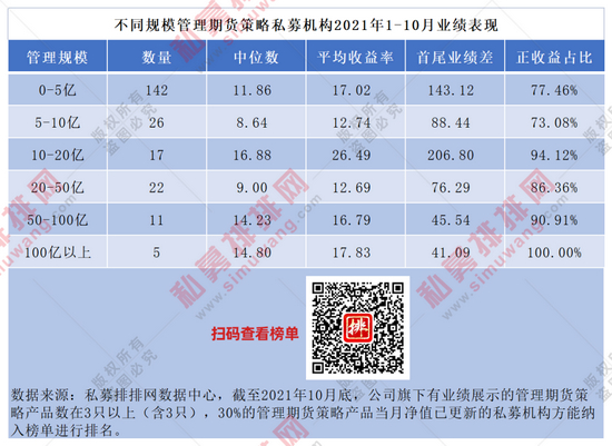 以下为不同规模管理期货策略私募机构今年以来榜单: