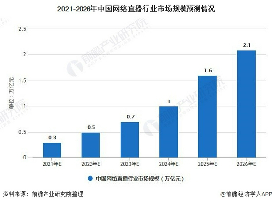 此次进军直播领域,不少声音猜测豆瓣或许是想赶上知识型直播这个风口。据前瞻产业研究院数据预测,我国网络直播行业市场规模2024年将突破万亿元,2026年有望实现2.1万亿。
