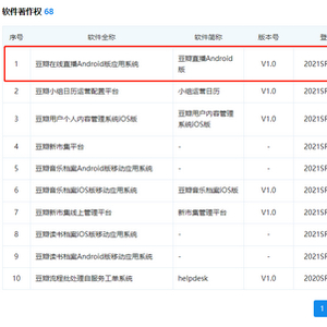 企查查信息显示,豆瓣所属公司北京豆网科技旗下的软件“豆瓣在线直播Android版应用系统”获得批准登记,登记日期为2021年11月15日。