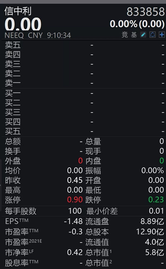 Wind显示,信中利最新的总市值已缩水至5.8亿元。