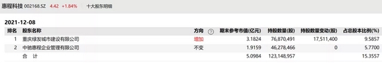 今年7月,惠程科技公告,重庆绿发成为公司第一大股东。今年7月14日,汪超涌辞去惠程科技董事长职务。8月2日,信中利发布公告称,中驰惠程所持惠程科技比例降已至5.77%,为惠程科技第二大股东。