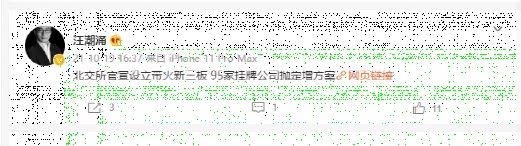 而汪潮涌最后一条微信发于11月29日,“希望能有流动性,应该把北交所的平台用起。”整个12月没再更新过。