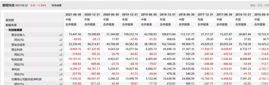 而惠程科技的业绩并没有维持长久,2020年惠程科技收入7.85亿,下降28.13%,对比2018年的18.98亿,更是下降58.64%。2020年归属于股东净利润为亏损9.6亿,下降811.43%。