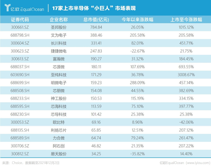 上市半导体小巨人们代表了该领域创新能力强、具有核心竞争力的公司,他们的发展动向也是中国半导体产业链本土化发展进程的关键缩影。