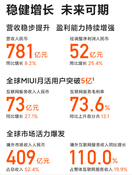 类似的还有小米,国际化做的还是不错的,小米现在已经在销量是全球前三的智能手机品牌了,在欧洲也拿下了不少份额,2020年小米2459亿全球营收中,有1224亿人民币来自海外市场,占比49.776%,已经有一半的收入是来自于境外市场,下图是其2021年Q3的业绩,海外市场占比已经达到了52.4%。