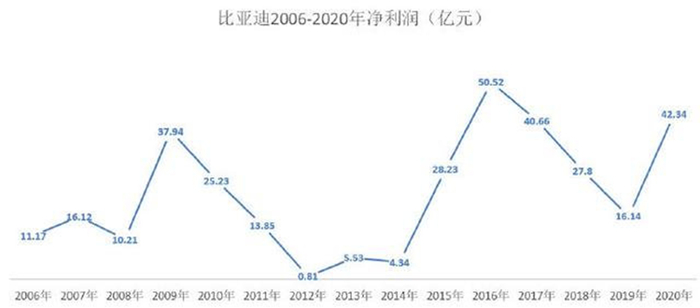 纵观比亚迪的发展史,我做了个净利润走势图,总体挺坎坷的,这反映出其除了技术之外,还有一些深层次的问题需要解决掉,才能实现长期向上的发展。