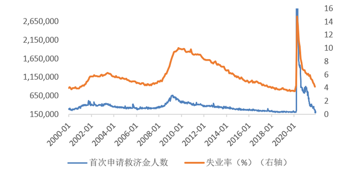 图2:失业率和申请救济金人数创疫情后新低