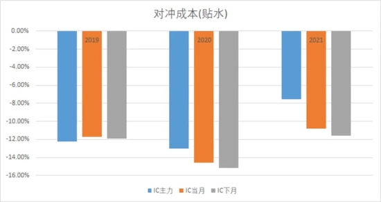 IC当月合约今年成本约为-10.83%,相比2020年IC当月合约成本-14.59%,成本下降25.77%。