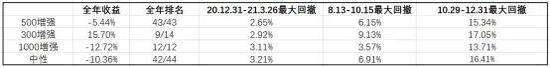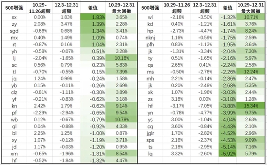 图13:2021年10月29日-2021年12月31日500指增超额及最大回撤情况