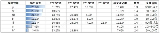 整体来看,今年共有3家管理人超额超过30%,7家管理人超额低于5%。