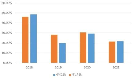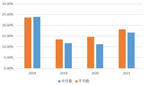 由于赛道拥挤程度弱于500指数增强,整体来看,300指数增强的超额衰减不如500指数增强严重。2021年300指数增强策略超额的平均数和中位数分别为18.17%、16.68%,相较前两年有所上升。