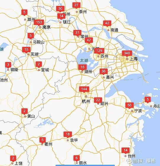 如下是华东与华南海底捞的分布,基本上一线城市约300家,强二线城市100~200家,三线城市基本不超过30家。