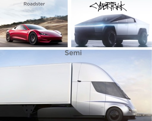 除此之外,特斯拉还规划有跑车(Roadster),皮卡车(Cybertruck)和半挂运输车(Semi)。