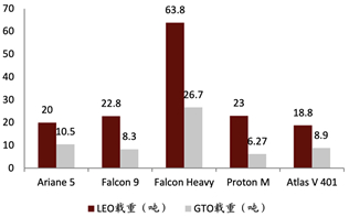 图表 9 全球主要运载火箭载荷对比