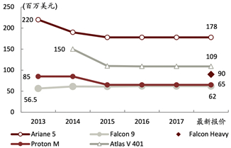 图表 8 全球主要运载火箭发射价格对比