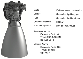 星舰使用的发动机为猛禽发动机。这款发动机长3.1米,高1.3米,自重1,500Kg,推力2MN,燃料为液态甲烷,氧化剂为液氧。在星舰尾部安装有3部海平面猛禽发动机和6台猛禽真空发动机。
