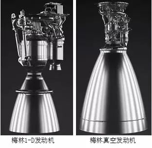 猎鹰系列火箭推进发动机为梅林1-D发动机和梅林真空发动机,这两款发动机的燃料都是煤油,并以液态氧为氧化剂。猎鹰9火箭的9表示其一级火箭有9台梅林1-D发动机,每台可以至多提供854 KN海平面推力,总推力达到7,686 KN。猎鹰重型火箭的一级由三个猎鹰9火箭的一级并联形成(见图表4),共27台梅林1-D发动机,总推力达5,130,000 lbf。猎鹰9和猎鹰重型的二级火箭各有一个梅林真空发动机,其推力达981 KN(真空中)。对应到运载能力,猎鹰9火箭LEO运载能力达22.8吨,GTO达8.3吨,地火转移轨道达4.0吨;猎鹰重型火箭LEO运载能力达63.8吨,GTO达26.7吨,地火转移轨道达16.8吨。