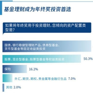 腾讯理财通还联合中国社科院国家金融与发展实验室财富管理研究中心发布了《2020年终奖调研报告》,报告显示,基金理财成为年终奖投资首选,有56.8%的”打工人“选择用年终奖来投资国债、银行稳健型理财产品、债券型基金、货币型基金等固定收益类理财产品;有50.3%的人选择直接投资股票,或混合型基金、股票型基金等权益类理财产品。