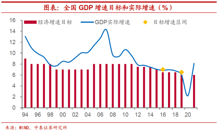 全国经济增速未达标年份少见。虽然每年未达地区经济增速目标的省份数量并不算少,但如果从全国来看,经济增速未达标的年份比较少见。从1994年以来,严格来说,仅有1998年和2014年两年经济增长未达政府工作报告中所提出的目标增速。而差距也均未超过0.2个百分点。此外,2015年初步核算下的GDP增速未达目标,但修正后略高出当年的增速目标,而2019年GDP增速持平于目标增速的区间下沿。
