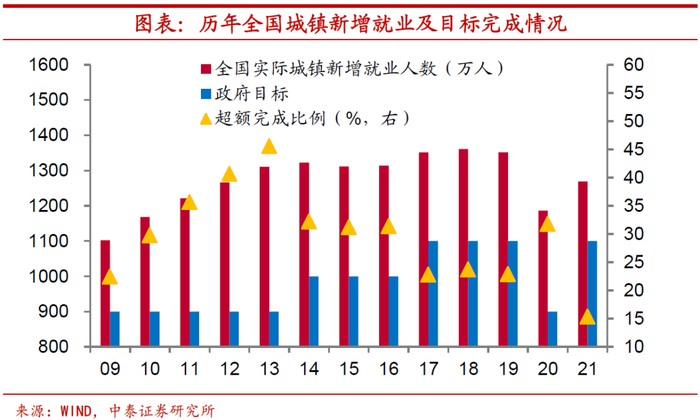 第四,民生保障仍然是各省全年工作的主要关切,其中就业问题被放在首位。在疫情干扰并未完全消除、经济增长速度趋缓的背景下,今年就业压力或仍不容小觑。虽然全国每年的城镇新增就业目标大体上能够超额完成,但从去年这一目标的完成情况来看,超额完成的比例仅有15%左右,创2009年以来新低,或意味着就业形势依然严峻。