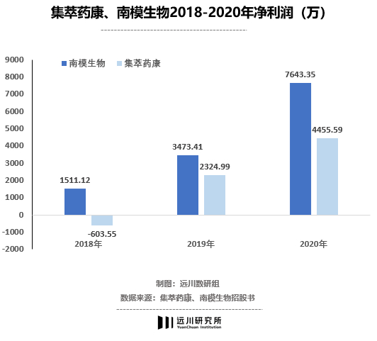 即使在强势的增速与高毛利率的加持下,集萃药康的2020年净利润也仅有0.76亿元,而南模生物更尴尬,相比于集萃药康,利润接近腰斩到0.45亿元。