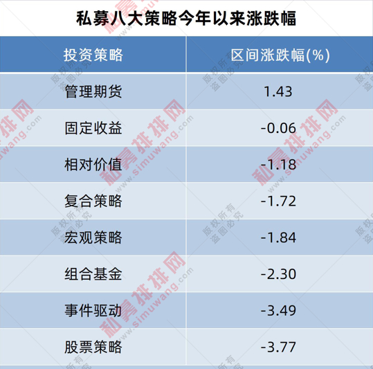 私募八大策略今年以来涨跌幅