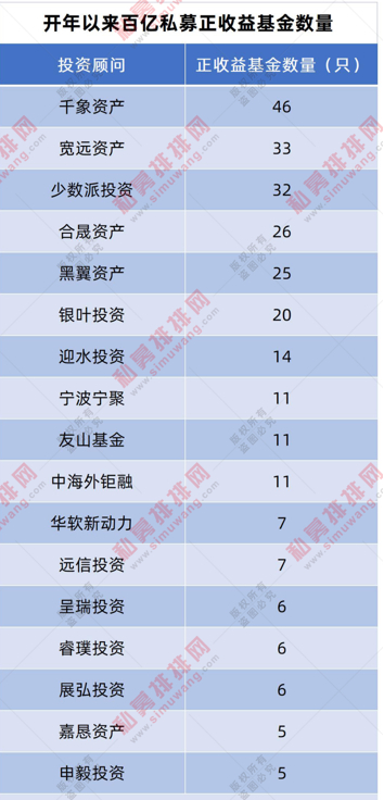 开年以来百亿私募正收益基金数量