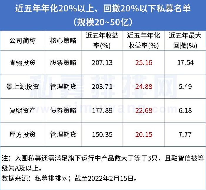 近五年年化20%以上、回撤20%以下的私募有哪些?