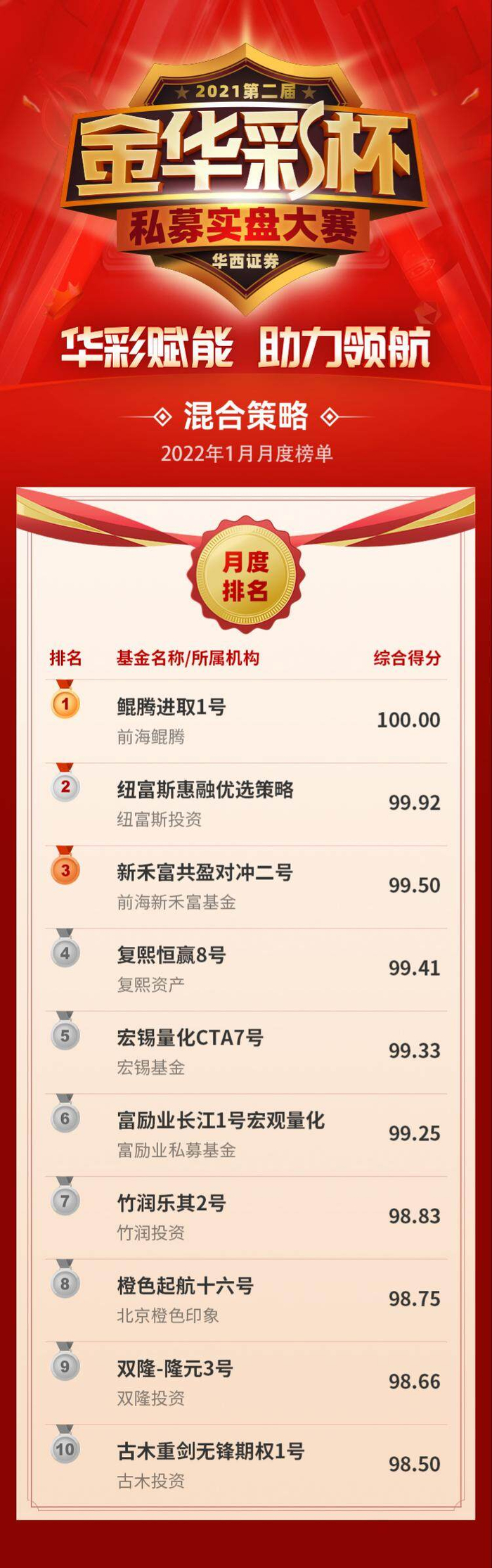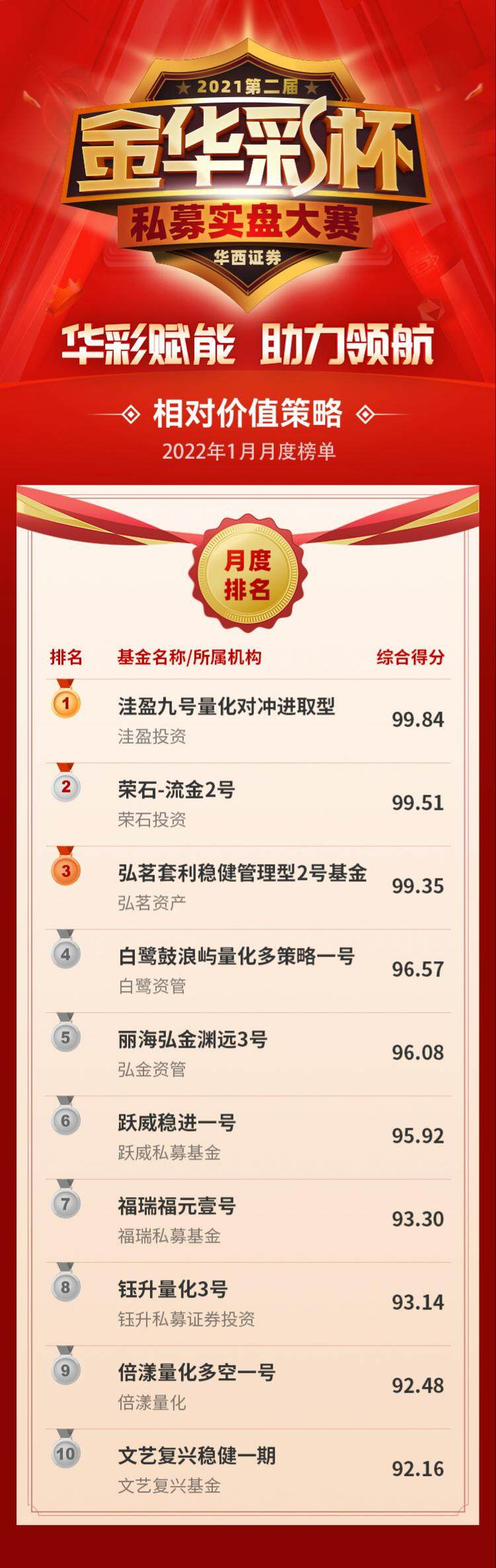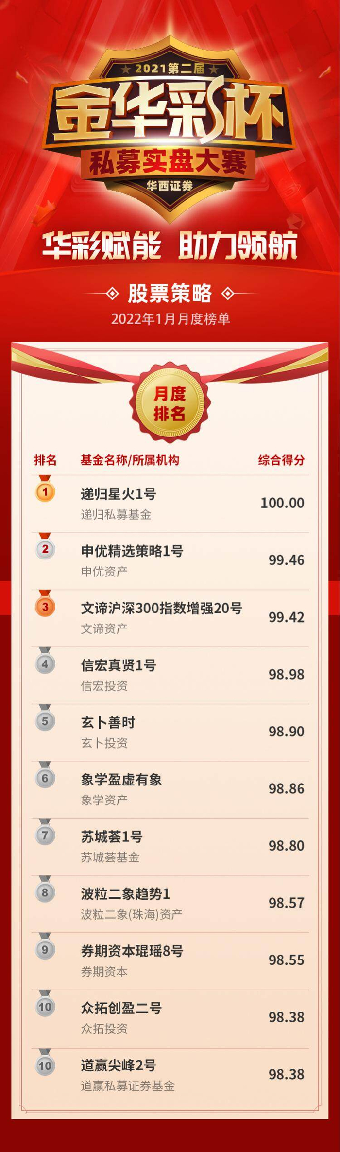 管理期货独美!华西证券第二届“金华彩杯”私募实盘大赛1月放榜