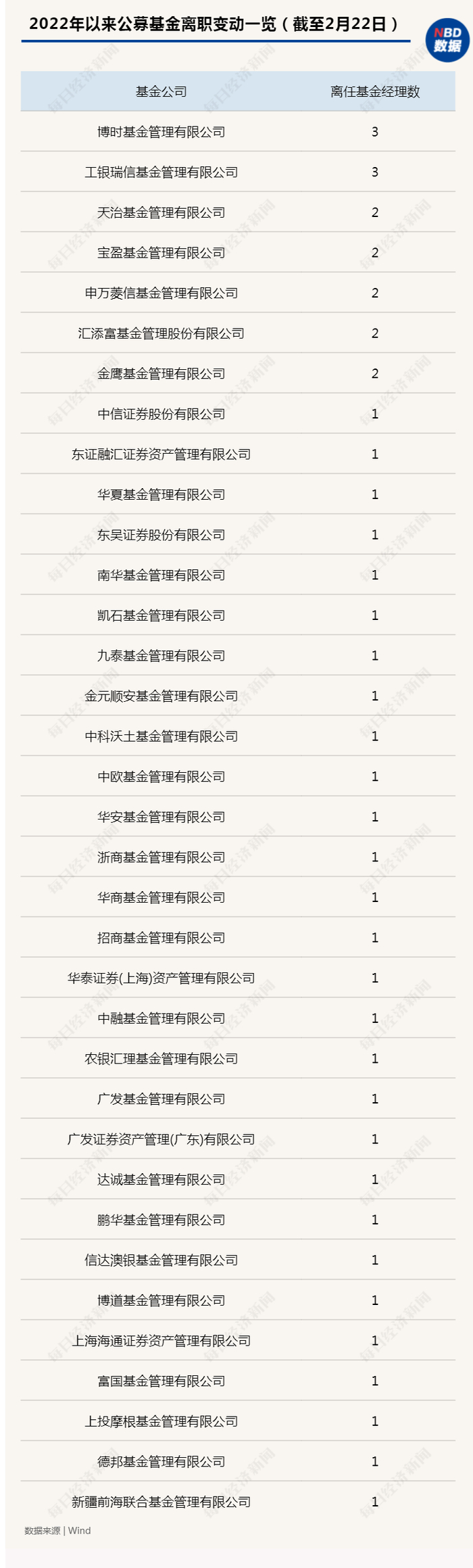 Wind数据显示,截至2022年2月22日,开年不到2个月,公募基金经理离职人数已达到了44人,涉及35家基金公司。其中,博时和工银瑞信分别已有3位基金经理离职,宝盈基金、天治基金等5家基金公司也分别有两名基金经理离任。