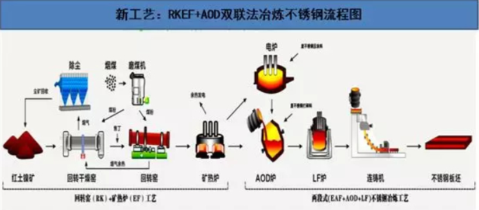 青山旗下的鼎信实业在2010年,就在国内率先采用RKEF工艺生产,并且在国际上第一家把不锈钢(AOD)生产跟RKEF生产工艺流程紧密结合起来,直接生产出不锈钢。这是世界不锈钢生产中的创举,可将炼钢成本节约20%以上,吨钢能耗节约50%以上。也正是因为这种新生产工艺,奠定了青山钢铁在不锈钢产业中的霸主地位。