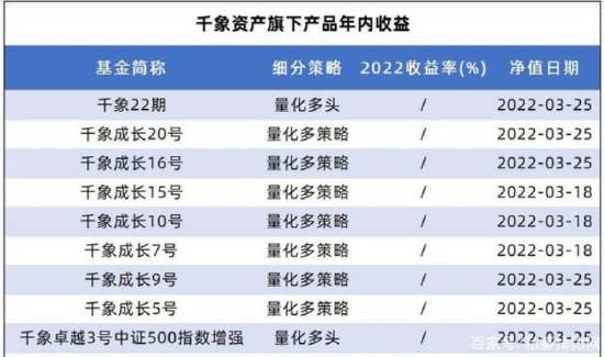 从备案基金的名称来看,千象资产3月份发行的多只基金也均含有“多策略”字样。由于CTA类复合策略的开门红,千象资产今年以来也是取得不错的收益,在今年以来业绩飘红的8家百亿私募中, 千象资产以***%的收益排名第二。
