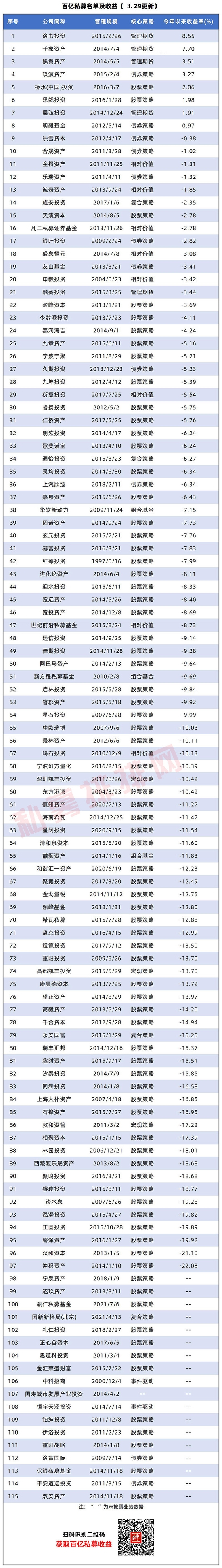 除了管理规模的突围,桥水在今年的震荡市场中也是取得相当不错的业绩。私募排排网数据显示,截至3月底国内百亿私募共计115家,其中仅有8家百亿私募取得正收益,桥水(中国)投资就是正收益百亿私募之一,年内收益2.06%,在百亿私募中排名第五。