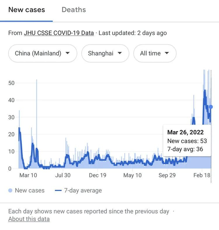 这里有两个注意点:一是目前所讲的病例,仅仅是新冠肺炎病例,没有包括无症状或轻症状新冠感染者。如果包括这批新冠感染者,根据上海的98%是无症状感染者,可以用病例数字除以0.02。如估计3月26日的平均每天新冠感染数是36/0.02=1600例。二是注意到1月15日开始的下降到2月16日低点,是在上海两会和春节期间。