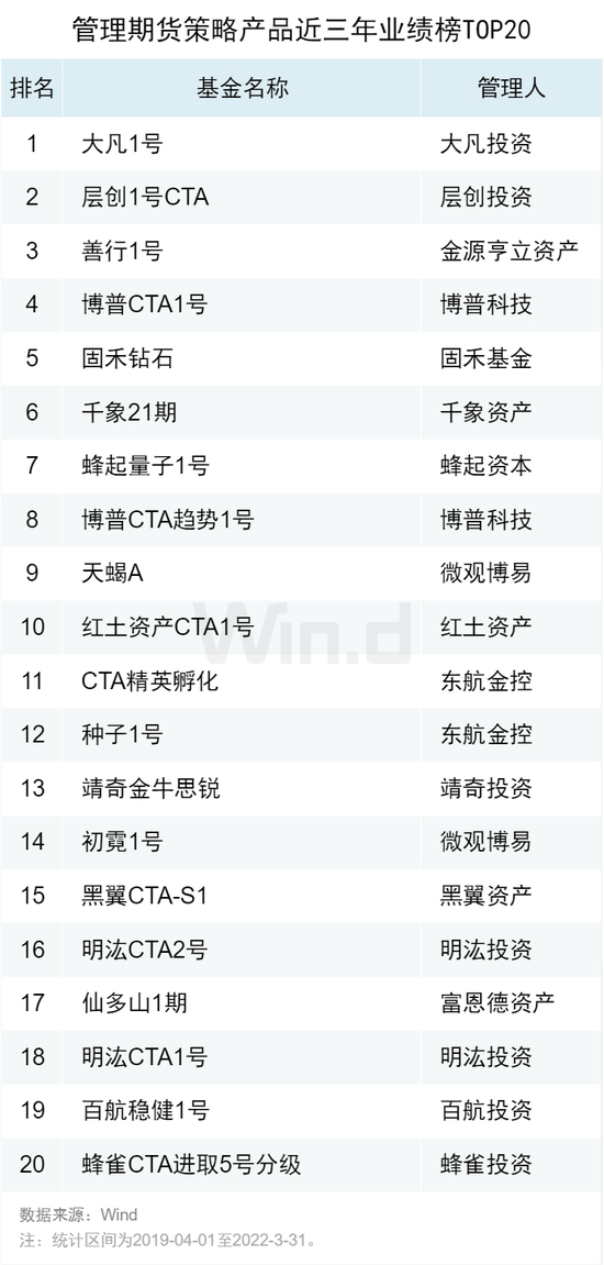 03管理期货策略产品近三年业绩榜TOP20