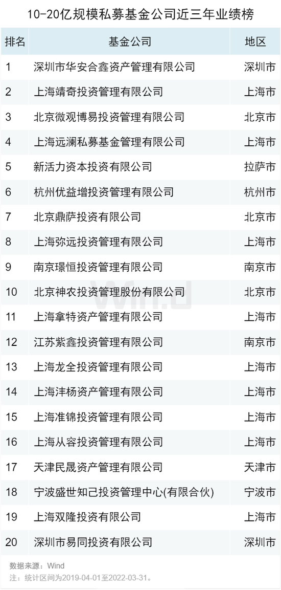 05私募基金公司近三年业绩榜TOP20(10-20亿)