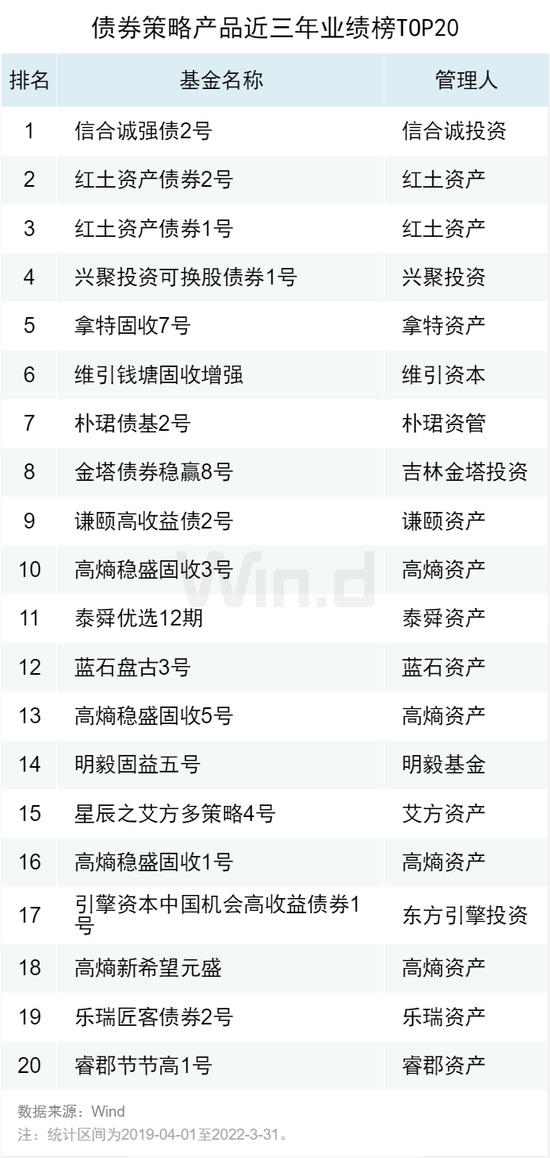 07债券策略产品近三年业绩榜TOP20