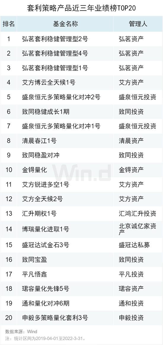 04套利策略产品近三年业绩榜TOP20