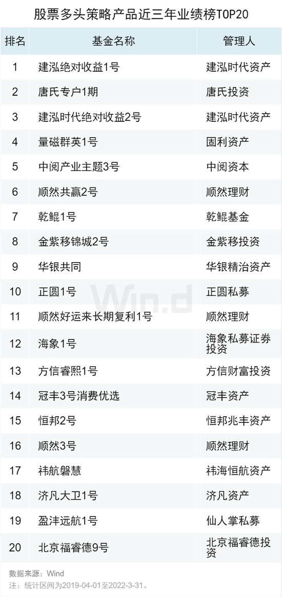 01股票多头策略产品近三年业绩榜TOP20