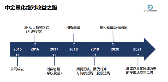 中金量化成立于2015年创始团队来自资深从业人员、顶级交易员和人大知名高校教授,形成了学界、业界相结合的专业投资团队,是国内较早一批从事量化CTA的投资团队,平均从业时间超过15年。