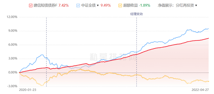 建信短债债券F,成立于2020年1月13日,截至2022年一季度的管理规模为4.19亿元,成立以来截至2022年4月27日的收益率为7.42%,成立以来的最大回撤仅0.31%。