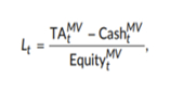 其中rf是无风险的国债收益,rEquity t+1 是伯克希尔公司股票的回报率,而负债的市场价值被估计为: