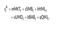 其中MKT是股票市场整体的超额收益,SMB是规模因子(小盘减大盘),HML是价值与成长因子(低市净率减高市净率),UMD是动量因子(上涨减下跌),BAB是贝塔对冲因子,QMJ是质量因子。