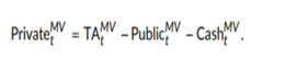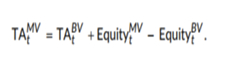 我们希望总是使用市场价值来计算杠杆率,但对于某些变量,我们只能得到账面价值(用上标BV表示)。我们认为伯克希尔公司权益的市场价值是股票价格乘以流通股数量。现金来自伯克希尔的合并资产负债表。资产负债表还提供了总资产的账面价值TABVt,以及权益的账面价值EquityBVt ,这使得我们能够估计出总资产的市场价值为: